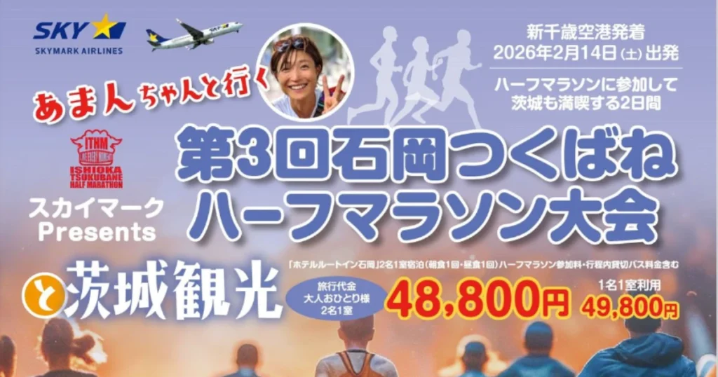 北海道のランナー注目!スカイマークがおひとり様OK&新千歳空港発着の石岡つくばねハーフマラソンツアーを販売開始