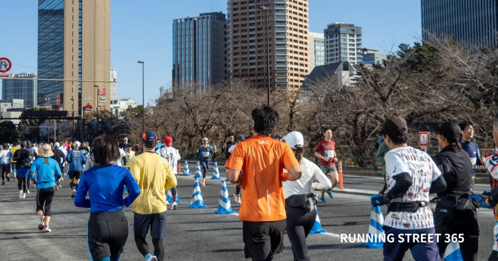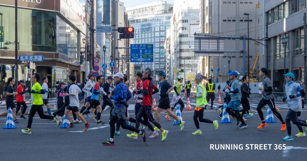 普段のランニングと同じ感覚で服装を選ぶと、レースではほぼ間違いなく暑くなりすぎます。レース本番は練習と比べてペースは速くなりやすく、そして信号待ちなどもないため、トレーニング時よりも体温が上がってしまうためです。