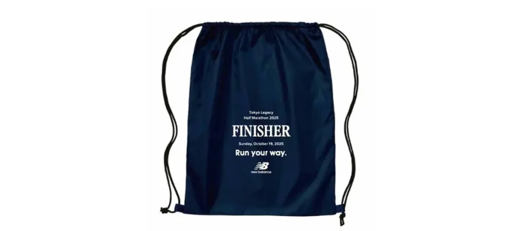 ギフトカードと交換できる「東京レガシーハーフマラソン2025」のフィニッシャープリントを施せるナップザックが用意されます(先着500枚)。完走の記念としてカスタマイズできます。大会の思い出を、自分だけの特別なアイテムとしてお持ち帰りください。