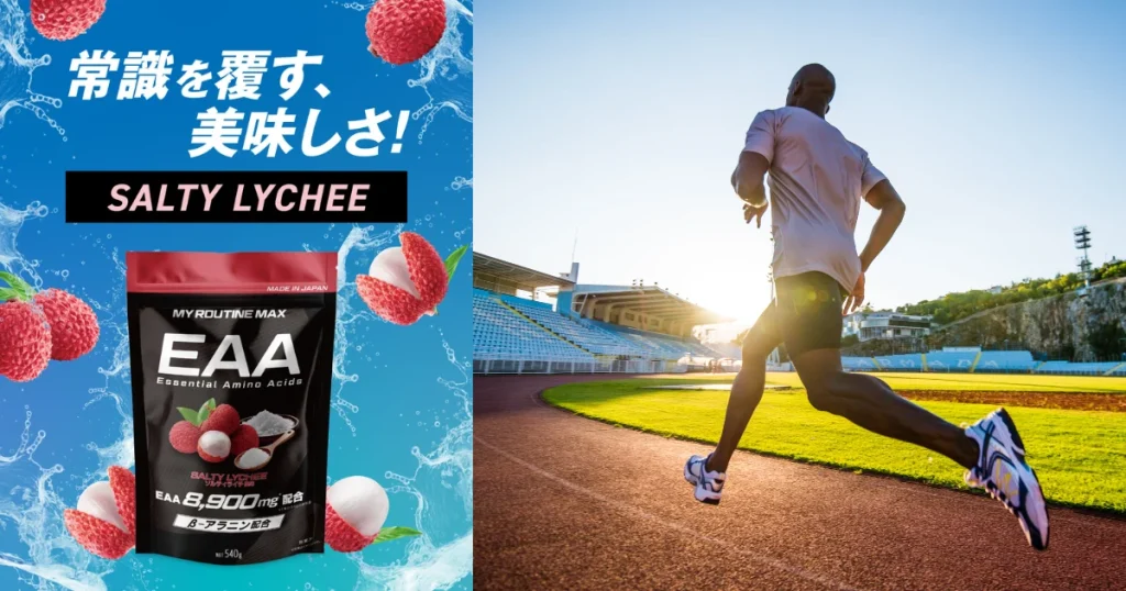 そこでご紹介したいのが、美味しさにこだわったEAAサプリメントの「マイルーティーンMAX EAA ソルティライチ風味」です。