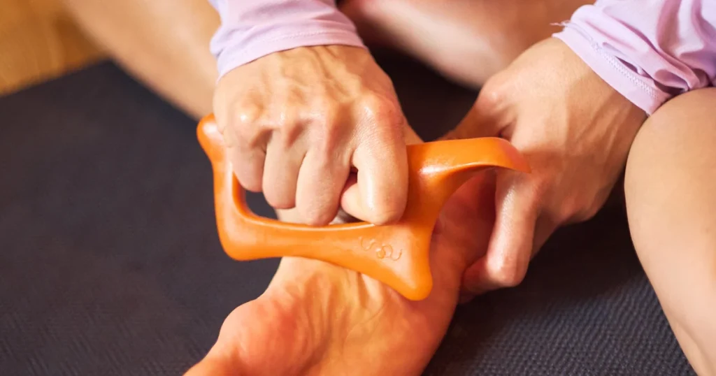 突起部分のポイントーエッジはツボ押しのように使うのがおすすめ。心地よいエッジで、足の甲など細かい部分を含む体のあらゆるツボを刺激できます。チューナー全体を握るようにして使うと、無理なく圧をかけられます。