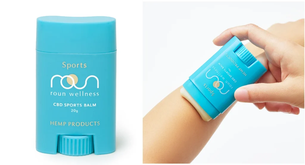 今回ご紹介したいケアアイテムの1つ目は「スポーツバーム スティック」です。以前レビューした「CBDスポーツバームⓇ」をスティック状にしたもので、カバンの中に入れておくことで、いつでも手軽にセルフケアができるようになっています。
