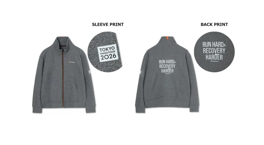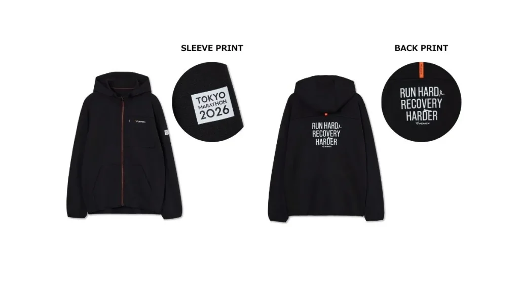 デザインは、「東京マラソン2026」のロゴデザインと、VENEXが掲げる応援メッセージ「RUN HARD, RECOVERY HARDER」のデザインの2種類。メンズ・レディースそれぞれジャケットが用意されています。
