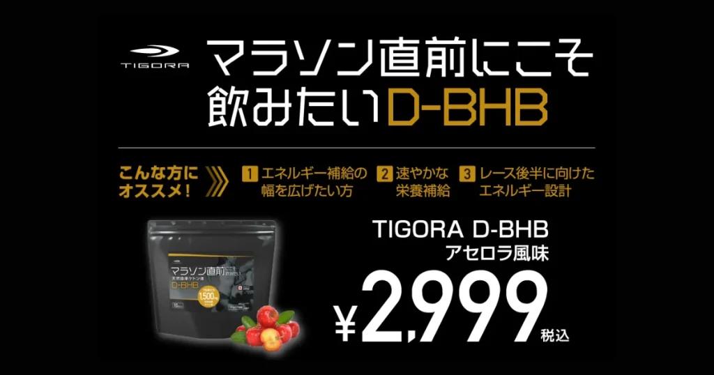 TIGORA「マラソン直前にこそ飲みたい天然由来ケトン体 D-BHB」で手軽にケトン体補給