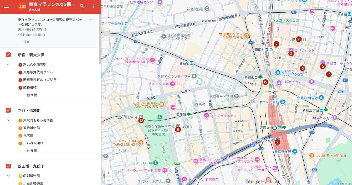 「東京マラソン2026 観光みどころマップ」はGoogleマップとも連携しており、目的地を決めてGoogleマップで経路をチェックすることも可能です。移動にかかる時間もわかるので、観光して戻ってきたら応援したいランナーの通過を見逃さずに済みます。