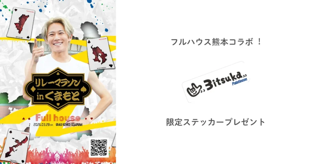 2026年3⽉28⽇(⼟)のイベント開催会場では「パラチノース®」と「Full house(フルハウス)熊本」がコラボした限定ステッカーが配布されます。