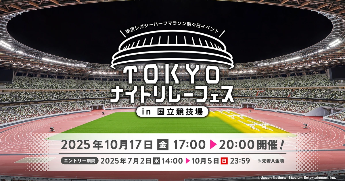 国立競技場を拠点に東京の街を走る大人気のマラソン大会「東京レガシーハーフマラソン2025」では、大会当日だけでなく、大会を盛り上げるためのイベントがいくつも実施されます。「TOKYO ナイトリレーフェス in 国立競技場」もののイベントのひとつ。