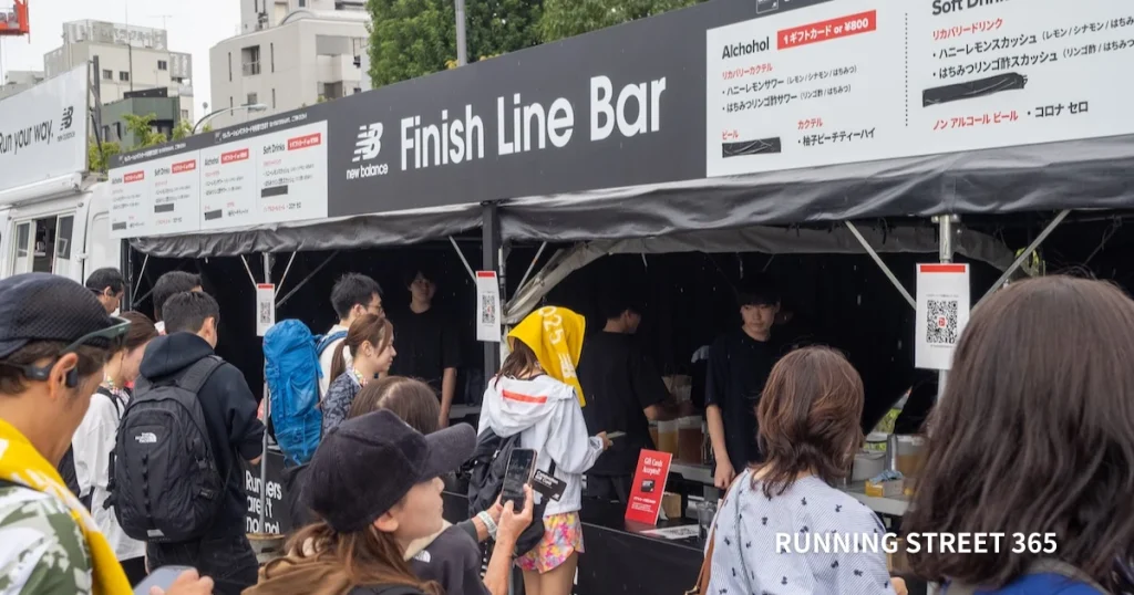 今年はニューバランスがアフターパーティを国立競技場に隣接する明治公園で開催し、完走したランナーに1,000円分のCelebration Gift Cardをプレゼント。会場ではギフトカードをフードやドリンクと交換できるサービスを行っており、走り終えてペコペコになったお腹を満たすことができるようになっていました。