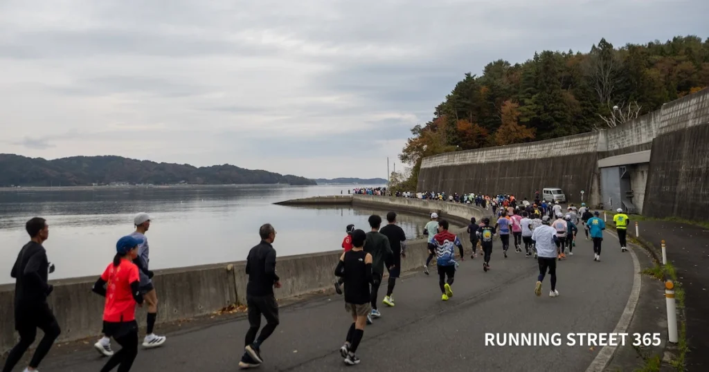毎年のように吹く、強い風もなく、走り出したら1kmもしないうちにじんわり汗をかき始めました。これは完全に想定外。Tシャツ1枚で走ればベストコンディションだったのに、過剰に「東北の寒さ」に備えてしまいました。おかげで走り終えたときにはウェアが重く感じるほど汗をかきました。