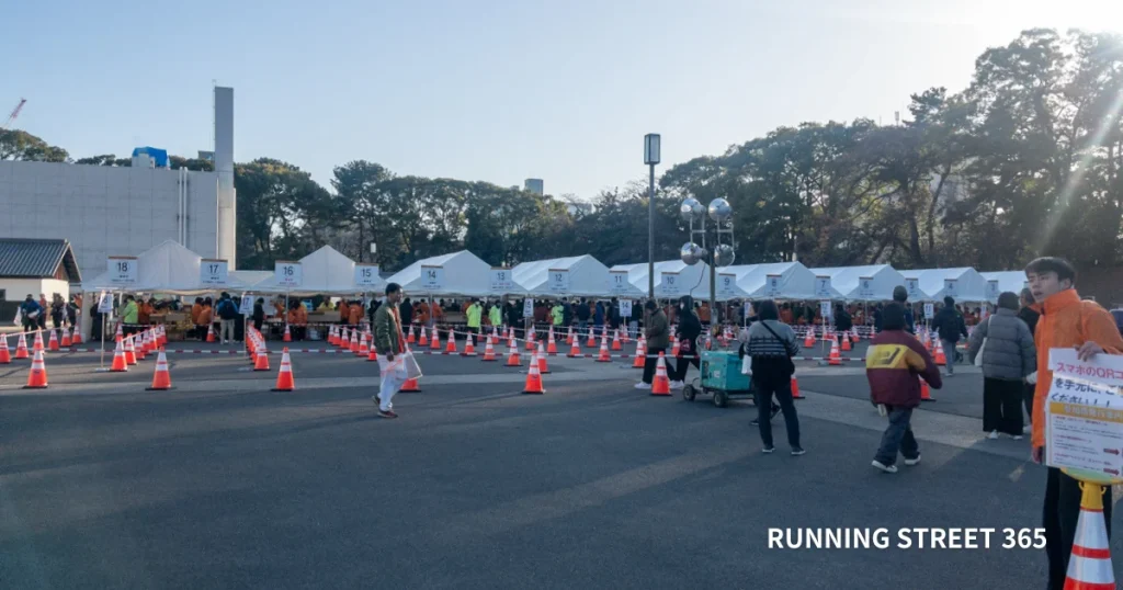 受付ではQRコードと本人確認書類(運転免許証など)を提出するのですが、これはかなりスムーズに受付作業ができていました。おそらくQRコードを使うだけでなく、何か他にも工夫があるのだと思いますが、読み取ってもらって、1歩進んだらすでにゼッケンが用意されていました。