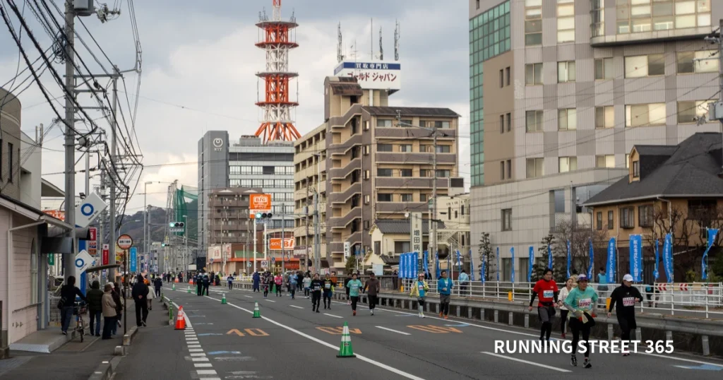 また、今年もしっかり冷え込んで、スタート時の気温がおそらく5〜6℃。ビルの間からスタートするので、スタート前は体が冷えてしまいます。さらに中盤以降は「風早」の地名に負けず劣らずの冷たい風が体温を奪っていきます。