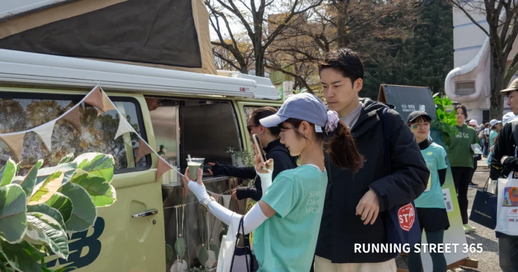 ラン仲間と一緒に記念撮影をしたり、キッチンカーで美味しいものを食べたり(すべてがお手頃価格!)。その間に歩き回ることになるので、おのずとクールダウンにもなります。10kmなので、走り終えたときにオールアウトしたとしても、すぐに回復してイベントを楽しめるのがいいところ。