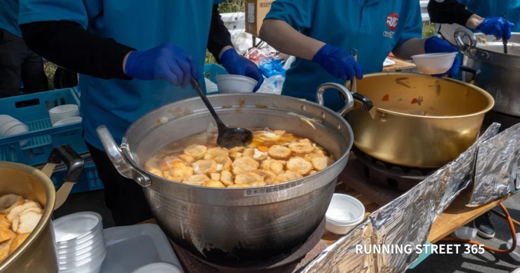 もちろんすぐに食べられるエイドもあります。でも、はっと汁のようにじっくり味わいたくなる料理も用意されていることもあって、結局のところタイムや順位なんてどうでもよくなります。1秒速く走ることよりも、1秒でもエイドでゆっくりしたくなる。