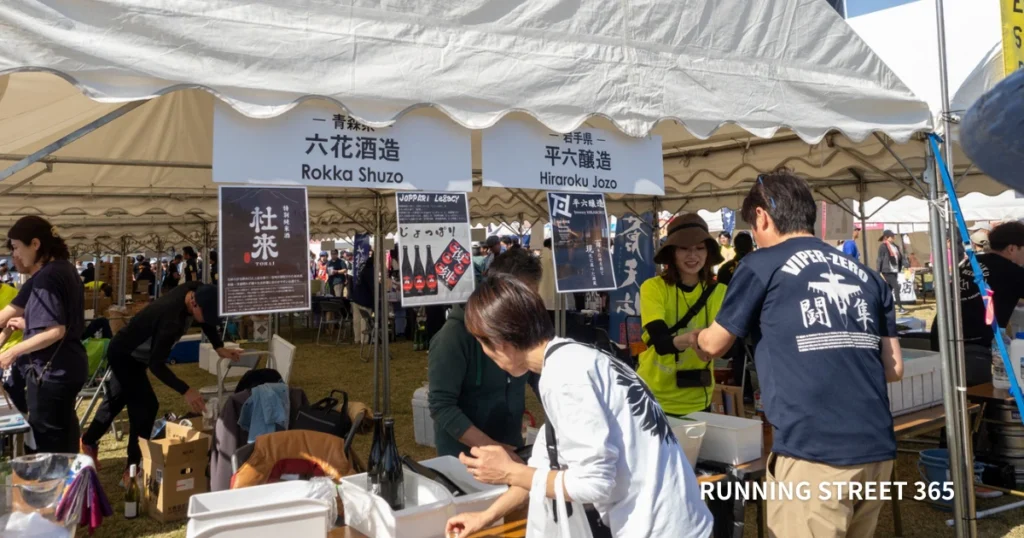 東北風土&フェスティバルは、メインがレース後にあります。参加者は完走後に5種類の日本酒とワインを試飲でき、さらには会場内で東北のA級グルメからB級グルメまで幅広い種類のグルメを楽しめます。