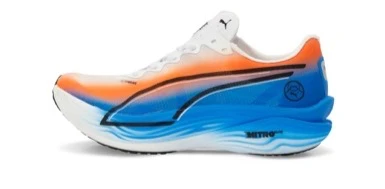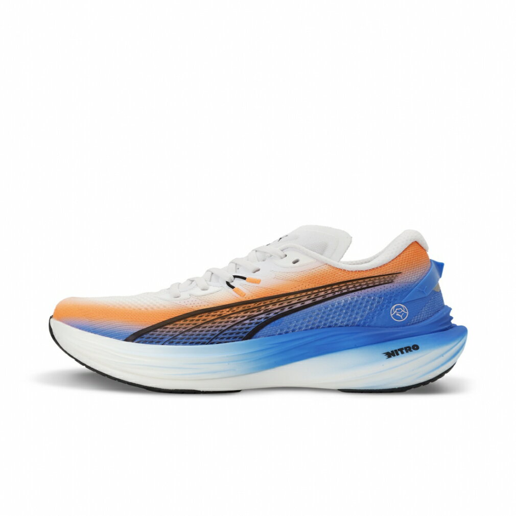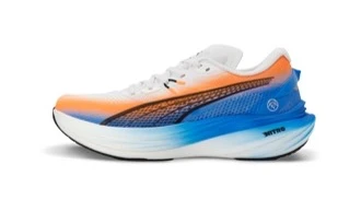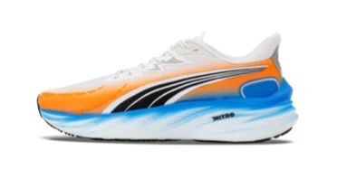 前作より4mm厚くなったミッドソールは、プーマの革新的なNITROFOAM TM ELITE技術を搭載し、優れたエネルギーリターンを実現します。アッパーには、プーマ独自の軽量ウーブン素材ULTRAWEAVEのモノメッシュを使用、通気性を高め、PWRTAPEでストレスのかかる部分を補強しています。