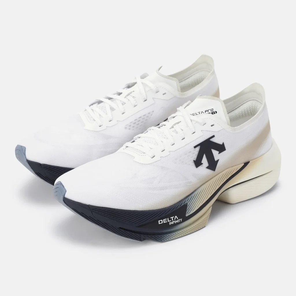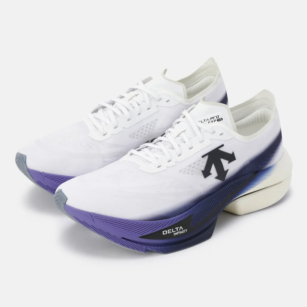 そのシューズがデサントの「DELTAPRO EXP V3」。韓国・釜山にあるデサントのスポーツシューズ研究開発拠点「DISC(DESCENTE INNOVATION STUDIO COMPLEX)BUSAN」での継続的な検証を通じて、ランナーの推進力を最大限に引き出すことを目的に磨き上げられた、WA準拠の大会で着用可能なランニングシューズです。