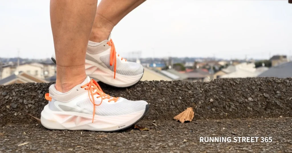 安定性も高く、着地時にまったくブレないのもお気に入りポイントです。ただ、決まった着地フォームに促されるので、人によっては最初だけ膝に違和感が出るかもしれません。その場合は、痛みを感じた時点で走るのをやめておき、徐々に距離を延ばしていくのがおすすめです。