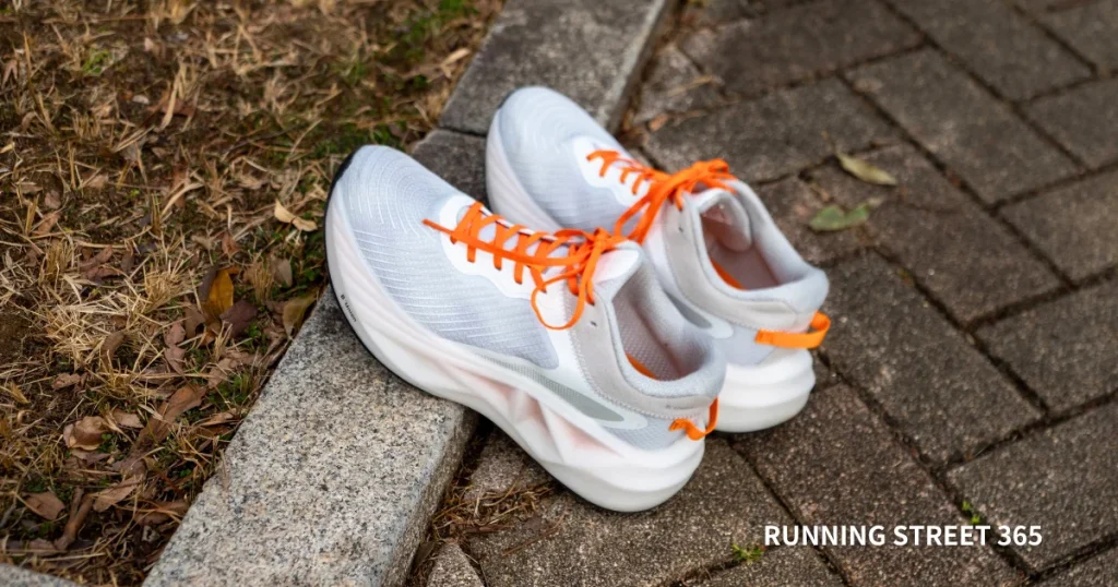 ただ一般的な300gオーバーのランニングシューズのようなもっさり感はありません。それは重さを高い反発性で相殺しているためで、足でランニングシューズを持ち上げる必要がないので、キロ6分くらいのジョグペースなら重いと感じることはまったくありません。
