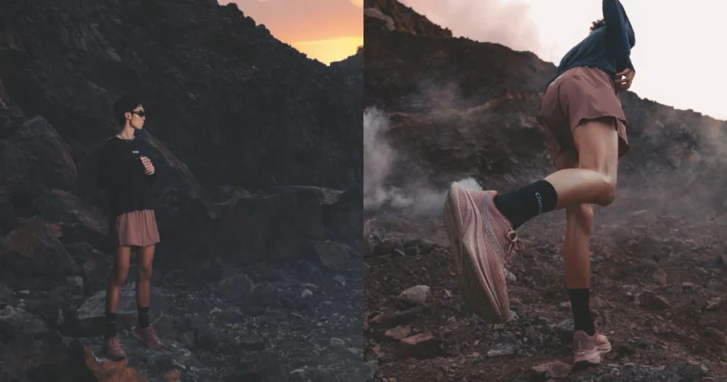 「ENDORPHIN SPEED 5 “DUSK TERRA”」のデザインは、昼から夕暮れ、そして夜へと移ろう過渡的な時間帯からインスピレーションを得ています。