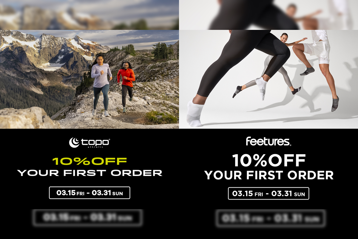 快適なランニングシューズを展開しているTopo Athletic®と、ベストパフォーマンスを引き出すソックを展開しているFeetures®が新生活を応援するキャンペーンを実施。オフィシャルサイトにて新規会員登録、またメールアドレスの登録を行うと、初回注文で使用可能な10%OFFクーポンがプレゼントされます。