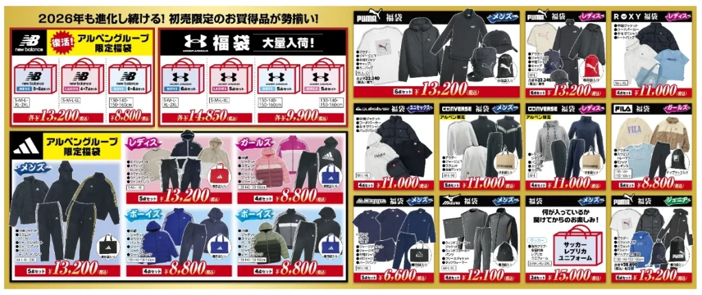 全国のスポーツデポ・アルペンでは人気ブランドの福袋が多数用意されています。その中でも注目なのがニューバランス福袋。さらに冬物ウェアが驚きの価格になっていますので、冬のランニングウェアを購入したい方は、お近くの店舗でチェックしておきましょう。もちろんランニングシューズもお得に購入できます。