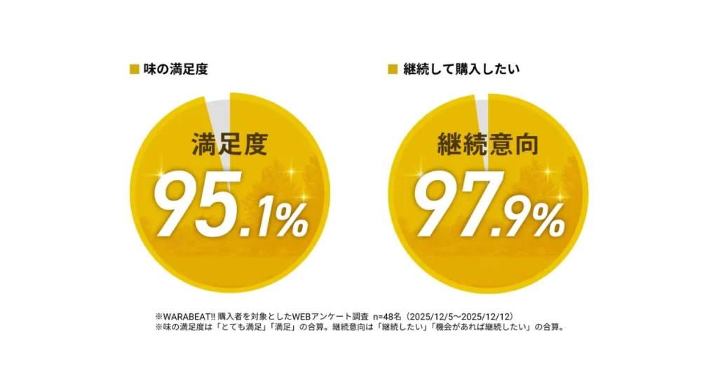 97%が「WARABEAT!!(ワラビート)」を継続購入したいと回答