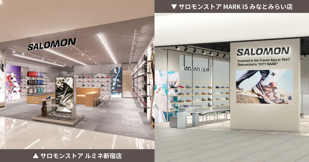 サロモンがJR新宿駅南口改札徒歩1分のルミネ新宿ルミネ2内の「サロモンストア ルミネ新宿店」を2026年3月6日に、みなとみらい線みなとみらい駅直結のMARK IS みなとみらい内の「サロモンストア MARK IS みなとみらい店」を2026年3月19日にリニューアルオープンします。