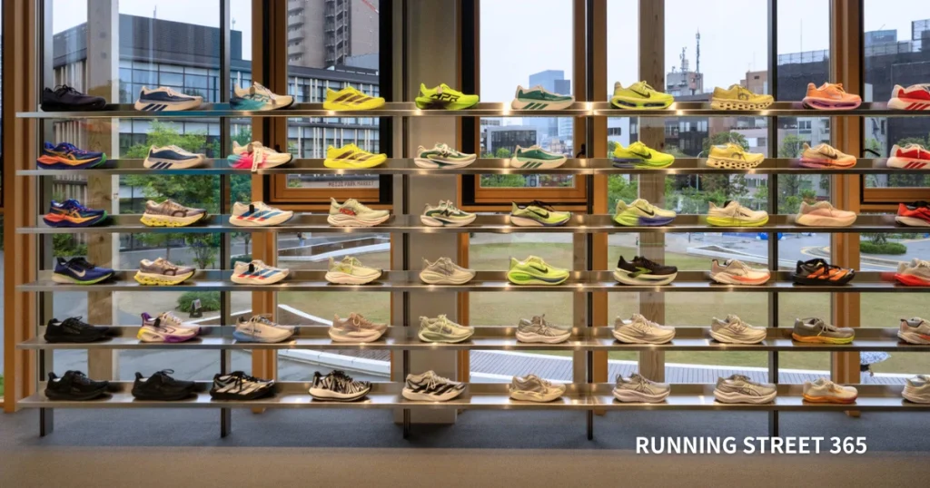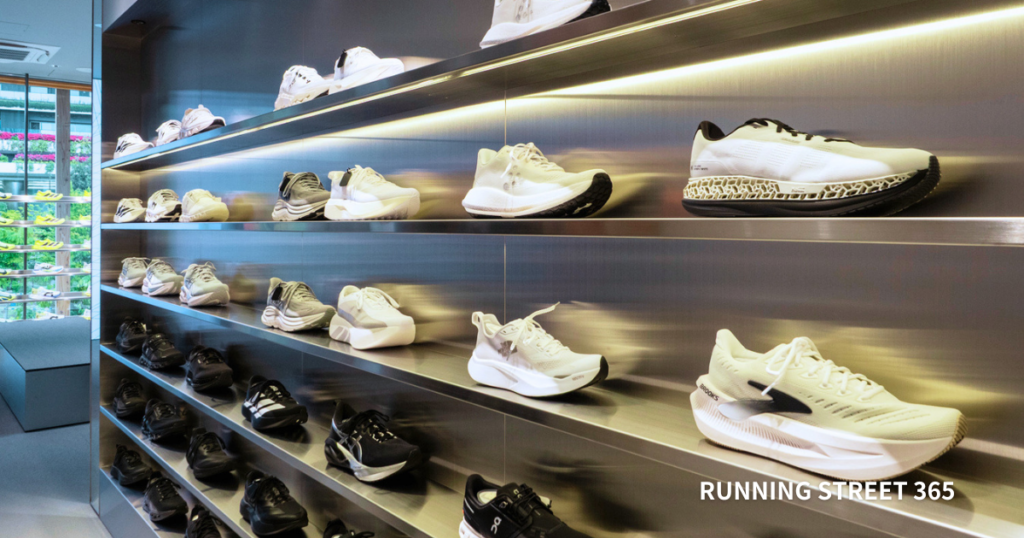 今回の内覧会では、店舗内の見学をしたあとに、少しだけ周辺を走り、ランニングイベントを模擬的に体感させてもらいました。すぐ近くに屋根のある国立競技場があり、さらに神宮外苑コースもウォームアップでジョグをしていれば到着します。